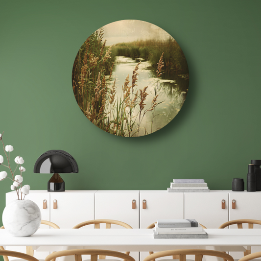 Zonsondergang met Wilgenboom aluminium muurcirkel