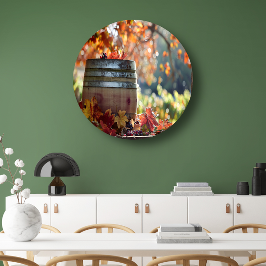Stilleven met druiven op houten vat aluminium muurcirkel