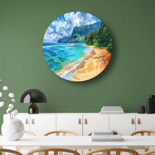 Impressionistisch Strand met Bergen aluminium muurcirkel