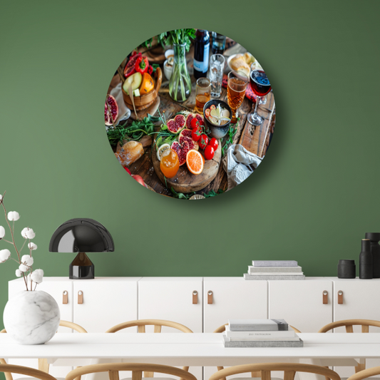 Sfeervol stilleven met fruit aluminium muurcirkel