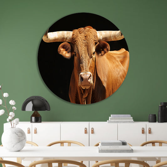Majestueuze stier met indrukwekkende hoorns aluminium muurcirkel