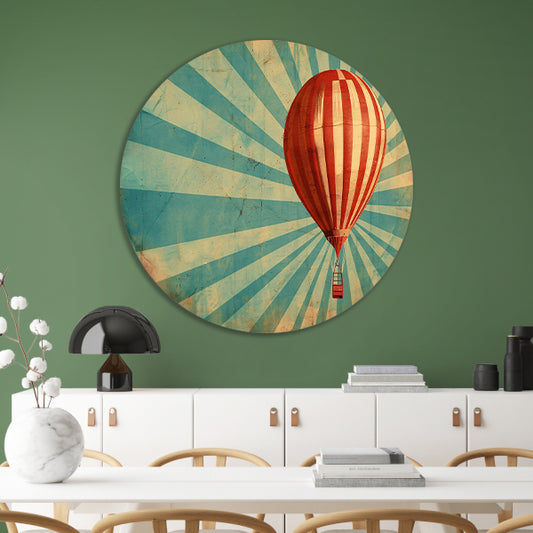 Vintage luchtballon met dynamische stralen aluminium muurcirkel