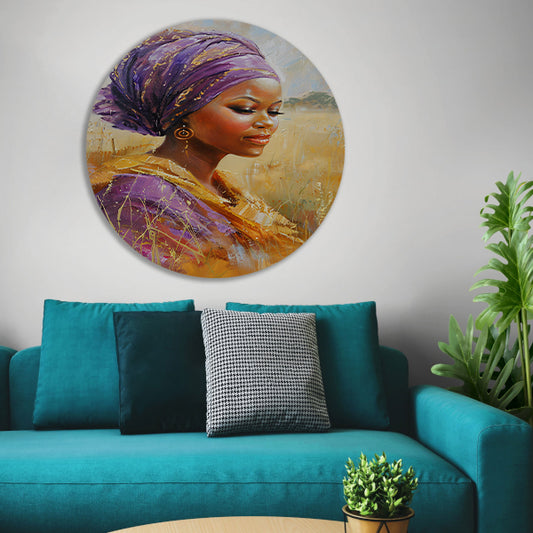 Realistisch schilderij van Afrikaanse vrouw aluminium muurcirkel