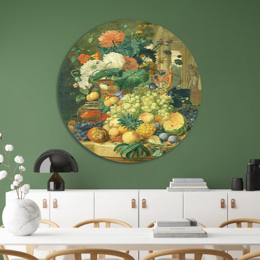 Stilleven met bloemen en fruit - Jean François Eliaerts aluminium muurcirkel