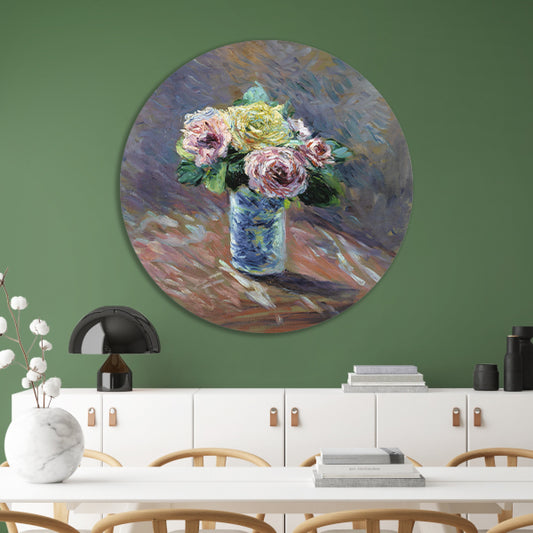 Gele en rode rozen in een kristallen vaas - Gustave Caillebotte aluminium muurcirkel