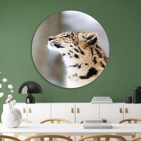 Schilderij van realistische luipaard in detail aluminium muurcirkel