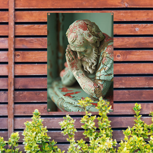 Statue with Weathered Paint and Deep Gaze tuinposter