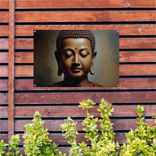 Serene Boeddha in Monochrome Sepia Tinten tuinposter