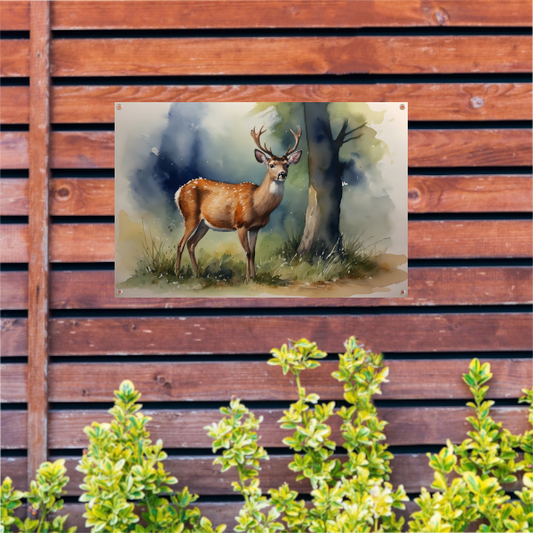 Statig Hert in Kleurrijk Boslicht tuinposter