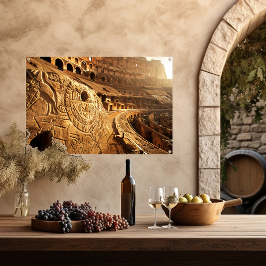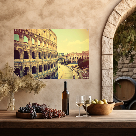 Zonsondergang bij het Oude Colosseum in Sepia tuinposter