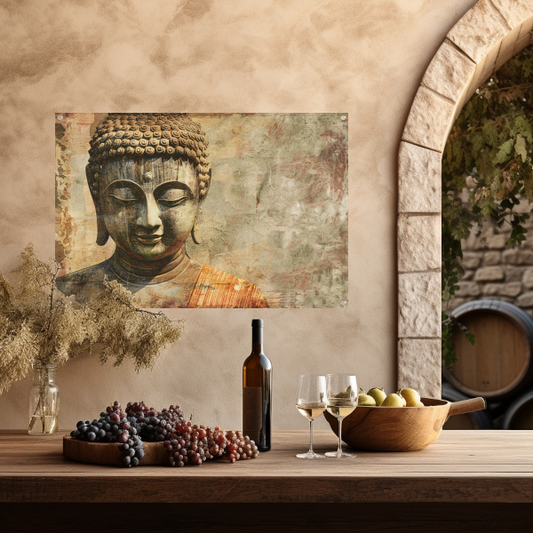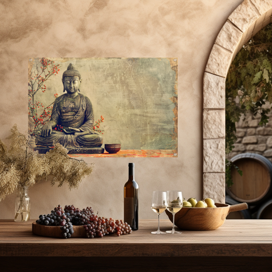 Boeddha in Herfstsereniteit: Sepia en Goud tuinposter