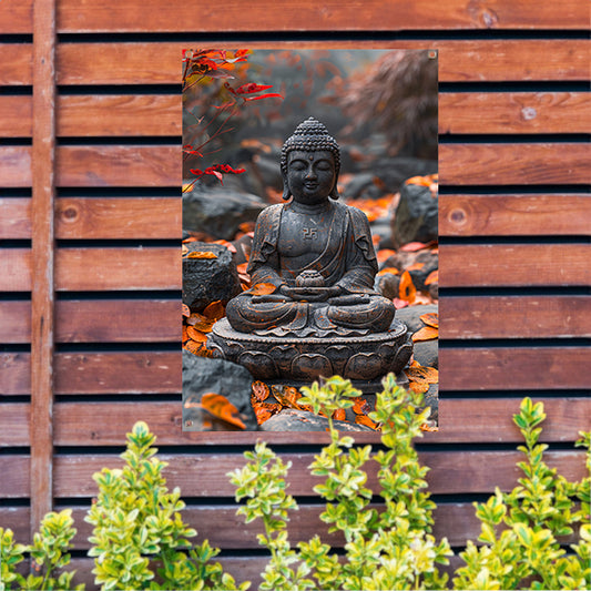 Boeddha in Rust Tussen Herfstbladeren tuinposter