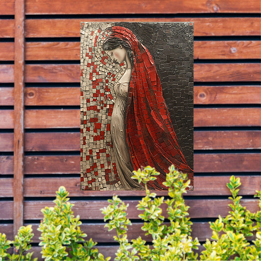 Rode Sluier Mozaïek van een Elegante Vrouw tuinposter