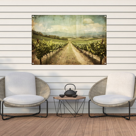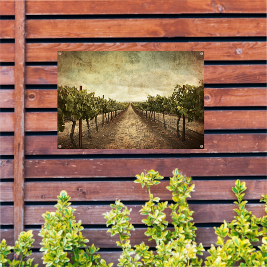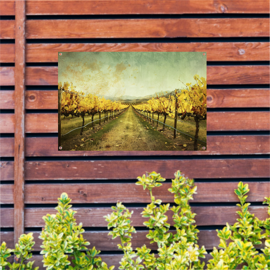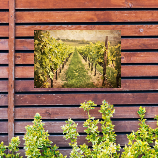 Wijngaard in sepia - Stille getuige van tijd tuinposter