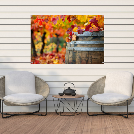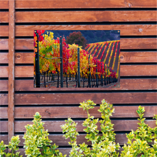 Herfstzon gloeit over golvende wijngaard tuinposter