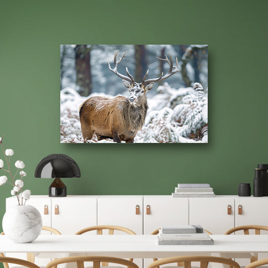 Hert met imposant gewei in winterlandschap acrylglas