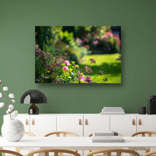 Levendige bloemen in een zonovergoten tuin acrylglas