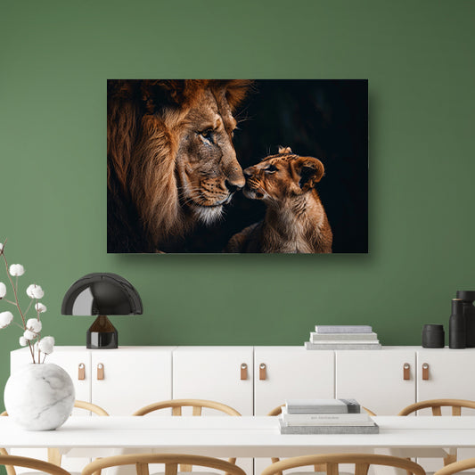 Intieme ontmoeting tussen leeuw en welp acrylglas