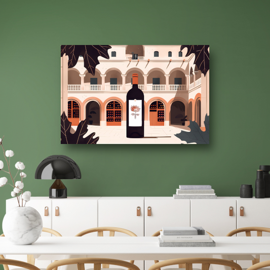 Rustige wijngaard met landhuis onder blauwe lucht poster