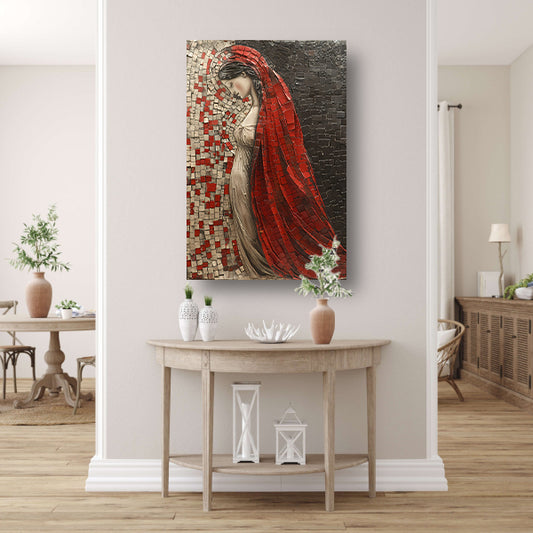 Rode Sluier Mozaïek van een Elegante Vrouw canvas