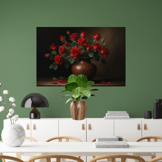 Stille Elegance: Rode Rozen in Sierlijke Vaas canvas