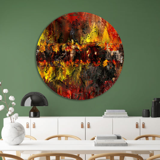 Dynamische abstracte kunst met vurige kleuren aluminium muurcirkel