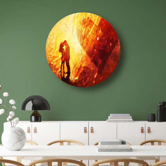 Twee Silhouetten en Hart in Warme Tinten aluminium muurcirkel