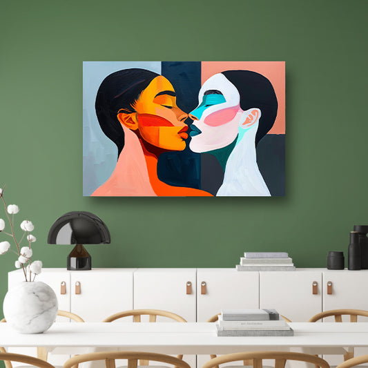 Kussend stel in kleurrijke popart stijl canvas met baklijst