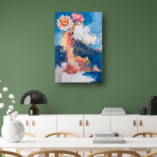 Moderne abstracte schilderij met bloemen en vulkaan canvas met baklijst