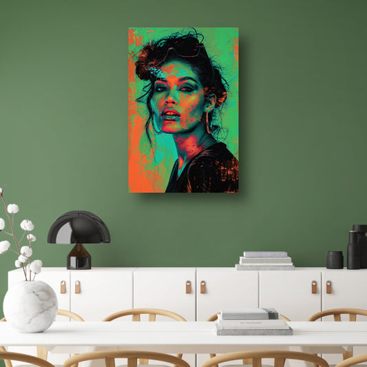 Kleurrijk en dynamisch digitaal portret van vrouw canvas met baklijst