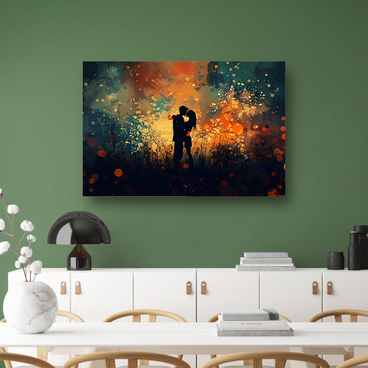 Omarmd Paar in Schemerlicht canvas met baklijst