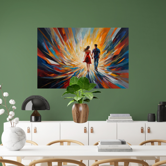 Explosieve Kleuren Dans met Liefdespaar canvas met baklijst