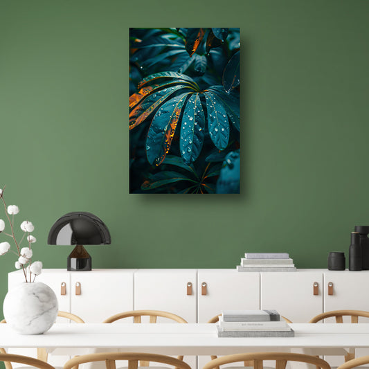 Abstract Plant met Oranje en Blauwe Vormen poster