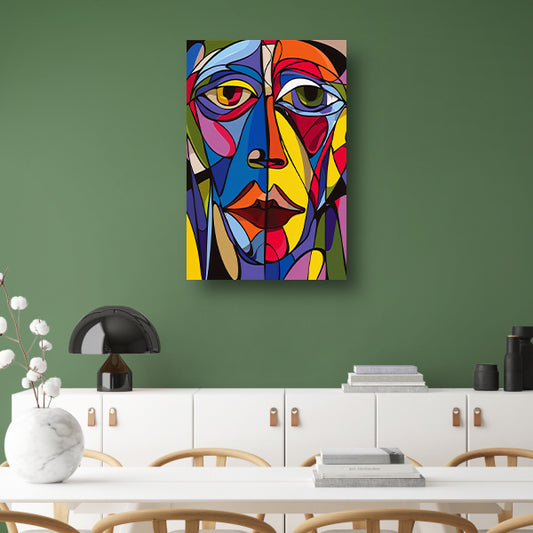 Kubistische Gitarist in Kleurrijk Interieur poster