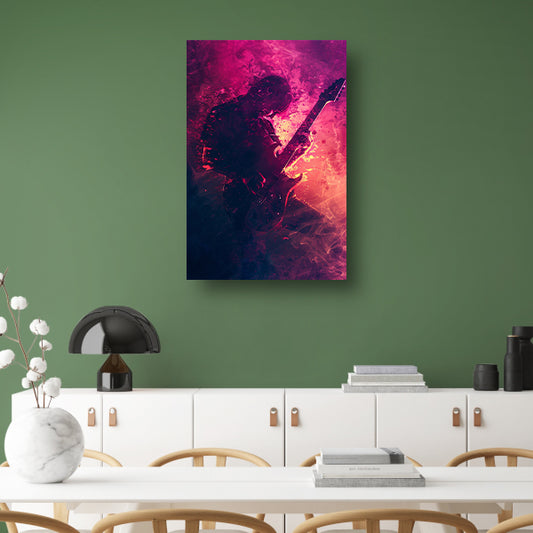 Gitarist omhuld door Abstract Kleurrijk rook poster