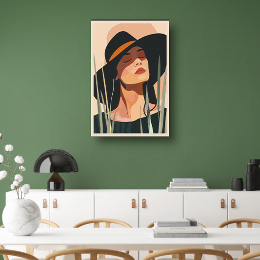 Ontspannen vrouw met hoed onder zon canvas
