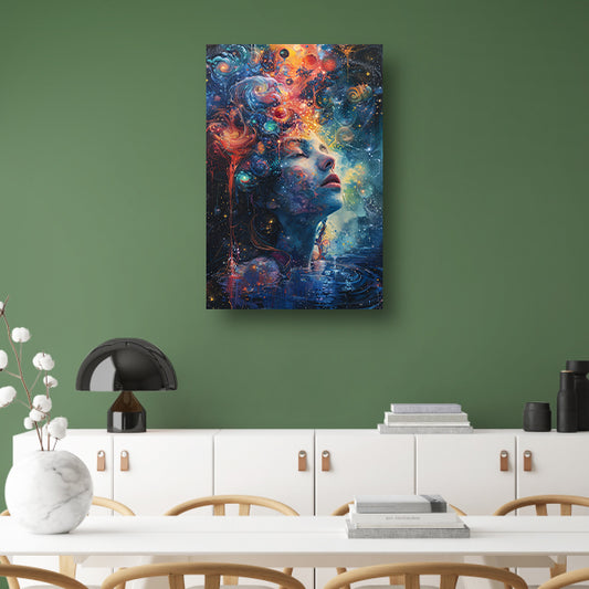 Vrouwelijke contemplatie onder sterrenhemel canvas