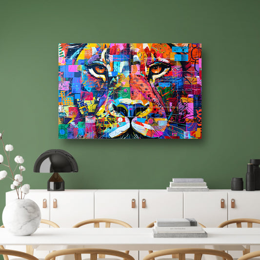 Kleurrijke abstracte leeuw schilderij kunst poster