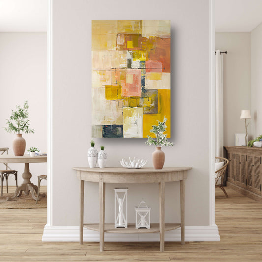 Geometrische abstractie in zachte kleurtonen acrylglas