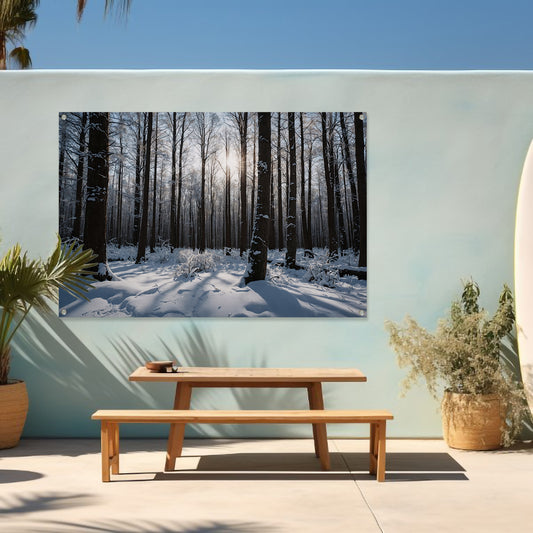 Serene winterbos met besneeuwde bomen tuinposter