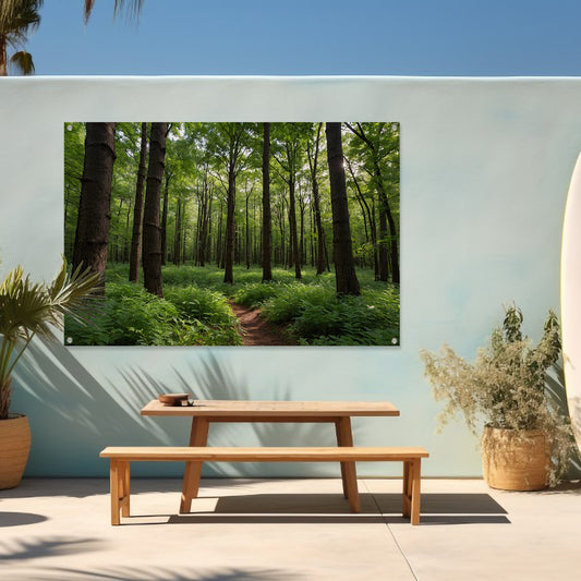 Zonnestralen door zomers groen bos tuinposter