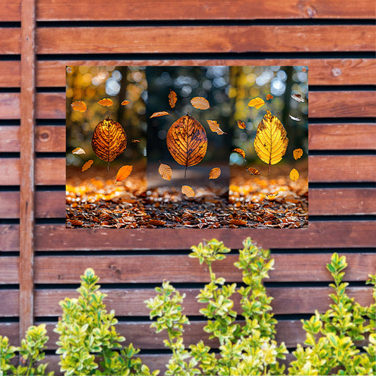 Herfstbladeren dansend in zacht licht tuinposter