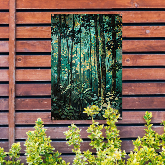 Kleurrijk abstract schilderij van een boslandschap tuinposter