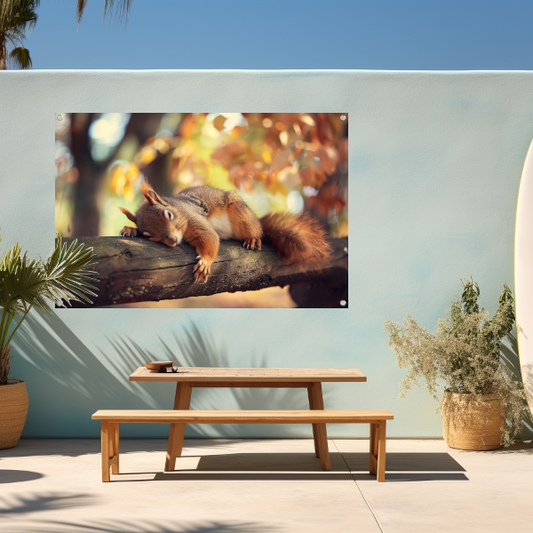 Eekhoorn geniet van herfstige rust tuinposter