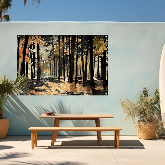 Herfstwandeling in een schilderachtig boslandschap tuinposter