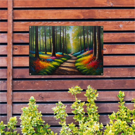 Betoverend Kleurrijk Bos met Wandelend Pad tuinposter