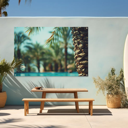 Tropisch Paradijs: Palmen en Wateroppervlak tuinposter