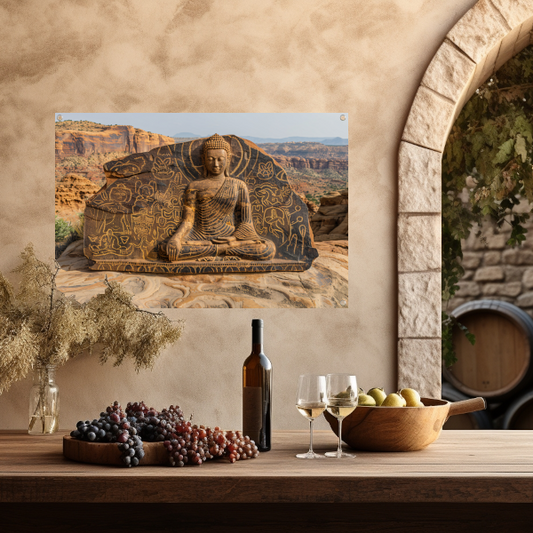 Boeddha met Antieke Petrogliefen op Steen tuinposter