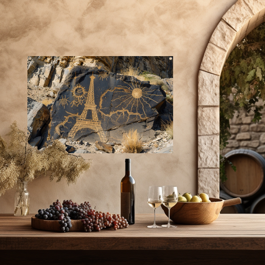 Eiffeltoren als prehistorische rotstekening tuinposter