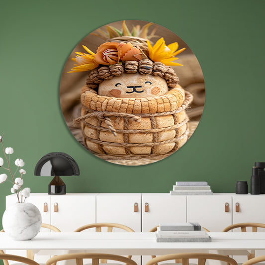 Handgemaakt beeld van leeuw met bloemenkroon aluminium muurcirkel